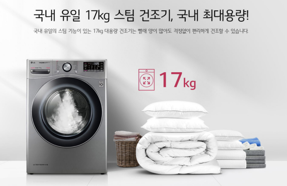 RH17VTS 대용량 17kg 엘지 트롬 스팀 건조기 기능과 스펙